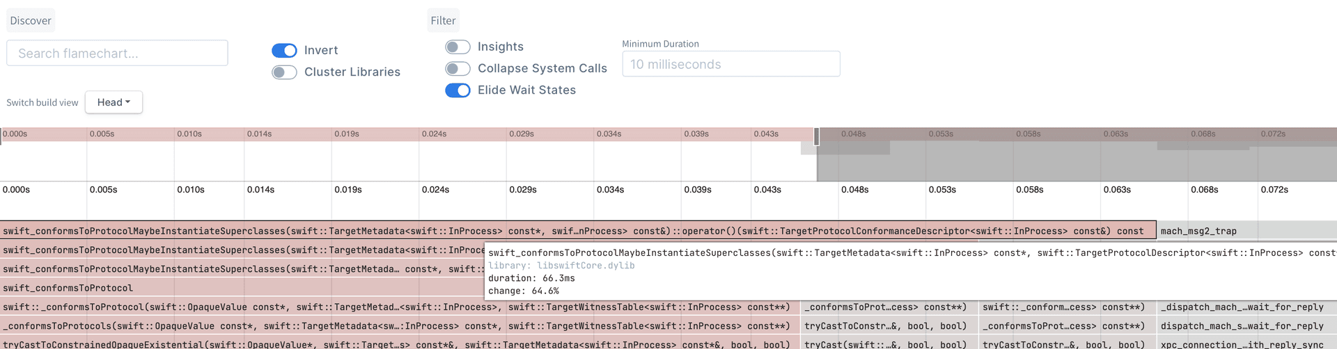 Next, try launching the same app a second time and running ettrace to get the trace. This time conformance lookups